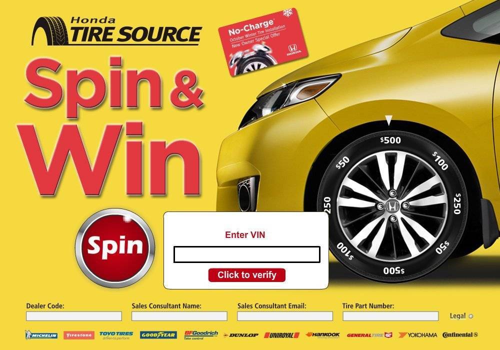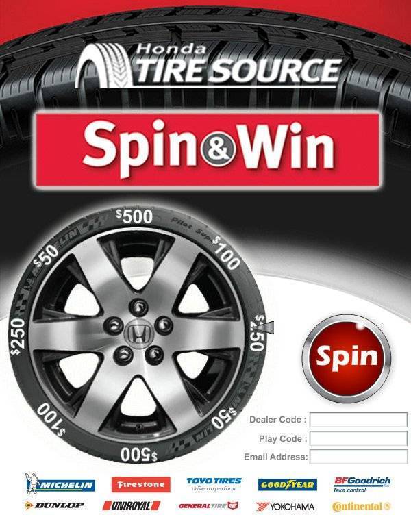 There are so many auto dealer promotions in this virtual prize wheel, I’m not even sure where to start. Take the image below. This one was done as an incentive to sales people. Every time they sold or leased a car, they logged into the special website and entered the VIN number for a chance at up to a 500.00 bonus. The virtual prize wheel allows you to control the odds and prizes for your automotive promotion.
